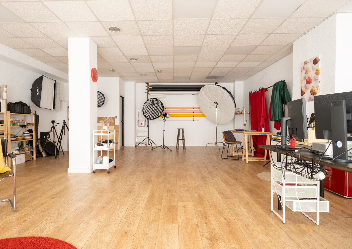 Además de la zona con los típicos fondos lisos de estudio, tengo otra zona que podemos transformar en una oficina, un salón o lo que se nos ocurra.
